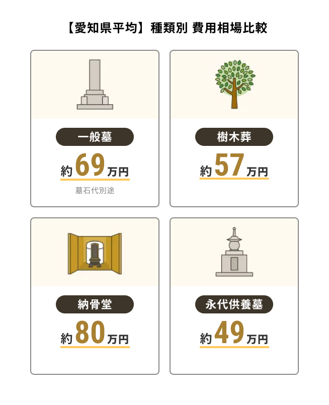 愛知県のお墓の費用相場はおよそ49万~80万円です。